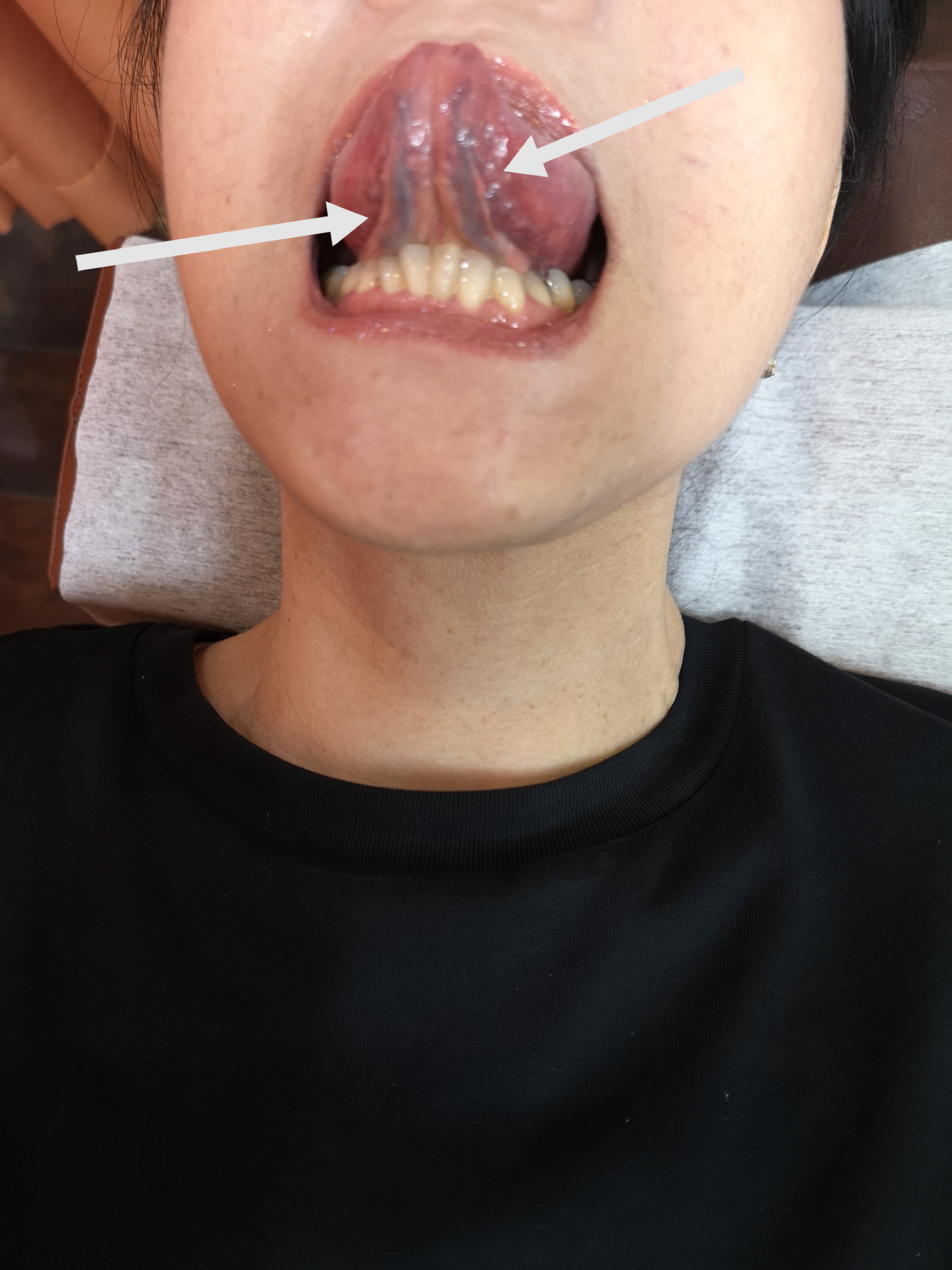 舌下静脈の怒張が著しい。