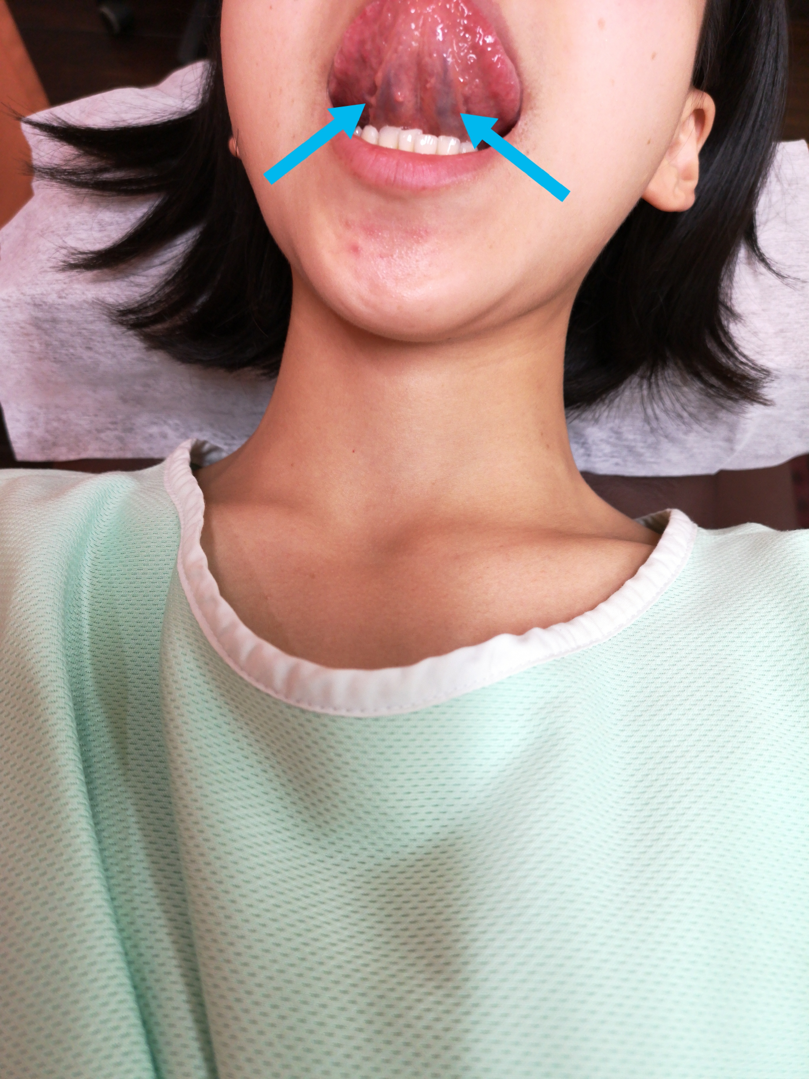 慢性肩こり 2025/10/14 20代女性 慢性肩こり 何度もお話ししていますが、慢性肩こりは肩そのものに原因は無く 上半身の血流をコントロールする下半身(腎)に原因があります。 それに伴い深部血流のうっ滞(血瘀)等が肩こりを引き起こします。 舌全体が赤黒く静脈の怒張が著しい。 深部血流の改善と血瘀を除き補腎をします。 施術後の舌の状態がこちら スッキリしてきました。 何度かの施術が必要です。 ブログ