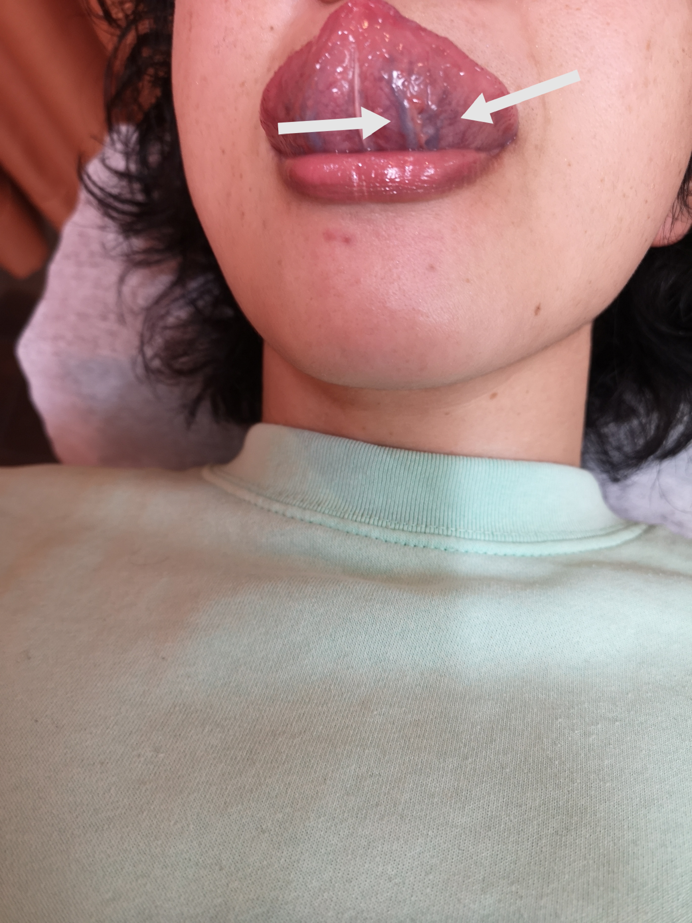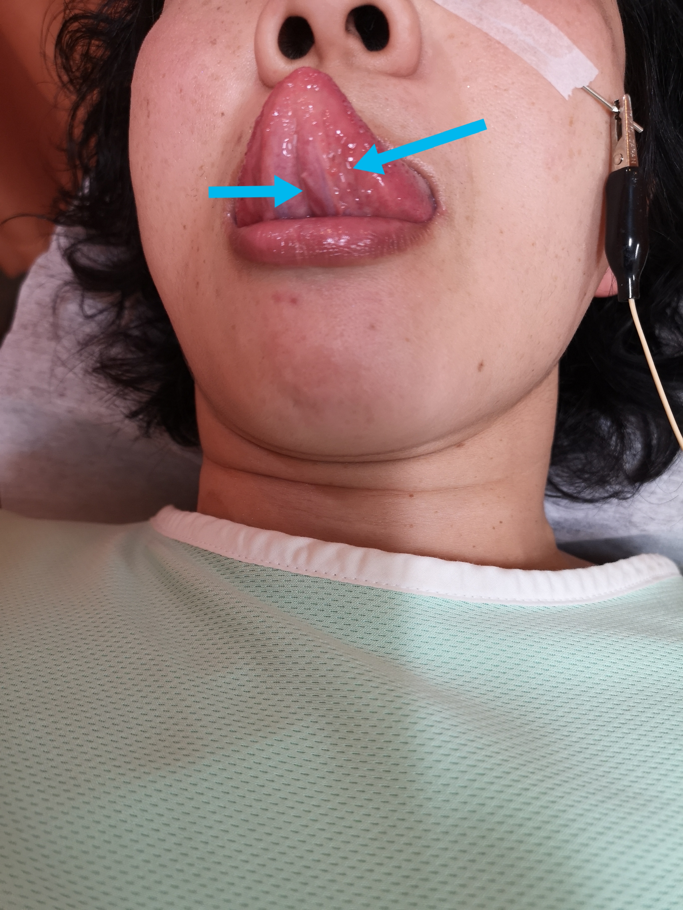 写真右(患者様の左)が明らかに怒張しています。